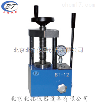 一体式BT-12两柱手动粉末压片机(12吨)是一体式结构压片机。其主板、油池、油缸在一块主板上,无密封链接,减少漏油点,立柱孔采用盲孔结构,柱塞,采用密封结构,密封效果好,从而解决了旧型分体式结构的频繁漏油问题。主要用于荧光光谱仪上固体样品制样及各种小型粉末压片成型。广泛应用于催化、硅盐酸、电池、陶瓷及粉末冶金等行业。深受高校、研究院、企业、工厂等单位实验室的喜爱。压片机体积小,压力大,压力控制精度高,现已应用于科研、教学、检测、催化、化工等各个行业。